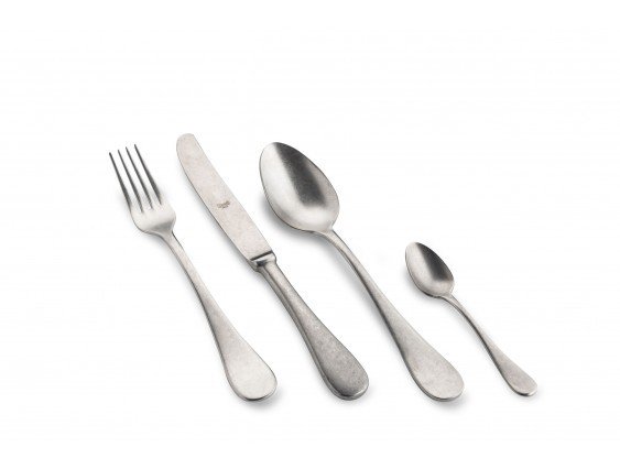 Mepra bestek in 18/10 roestvrijstaal (RVS) met een authentieke, retro uitstraling. Dit bestek heeft de zogenoemde vintage of ook wel ‘stonewashed’ uitstraling. Een prachtige aanwinst voor zowel de moderne als ook de klassiek ingedekte tafel.